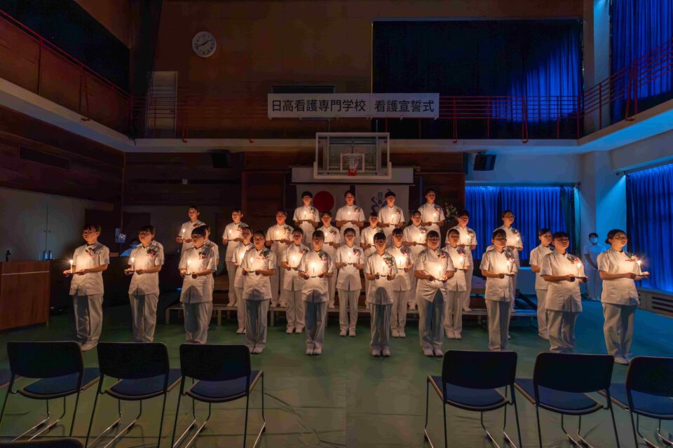 1年生が入学して半年を迎える10月に看護宣誓式を行います。