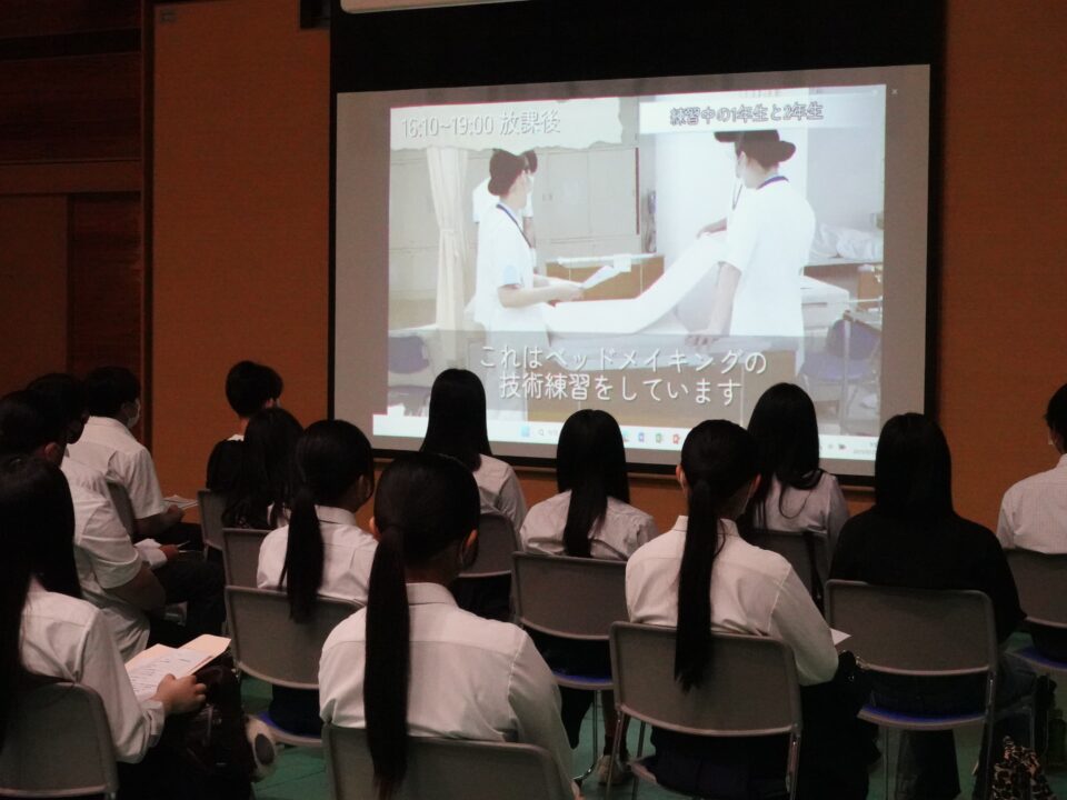 学校紹介や入試説明に加え、看護技術の体験コーナーもあり、学内の雰囲気や設備を直接体感できます。